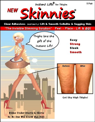 These fabulous clear adhesives can be strategically and secretly placed to tuck, lift and contour your body. Use as a non surgical solution for an Instant Thigh Lift. Hides discreetly under shorts and skirts, so no one will know but you. As seen on Shark Tank, Rachael Ray Show, Today Show, HSN, QVC & More!Read more Skinnies Instant Lifts - 5 Pair Thigh Lifts - Clear Adhesive Strips Instantly Smooth Cellulite & Lift Sagging Skin